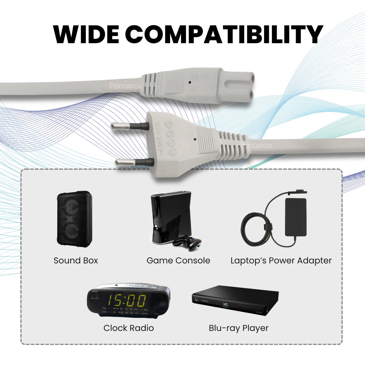 🔌 Universal Compatibility: Standard IEC C7 “figure-8” connector works with most consumer electronics