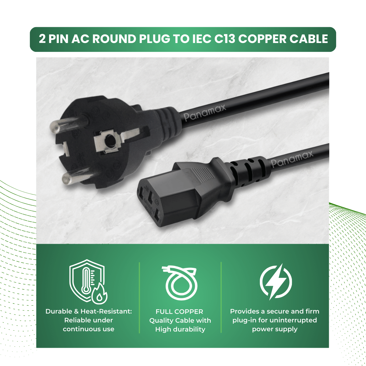2 PIN AC ROUND PLUG – IEC SOCKET POWER CABLE