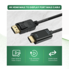This E2161, 4K HDMI Male to DisplayPort Male Cable provides a seamless connection between HDMI video sources and DisplayPort monitors or displays, featuring active signal conversion that enables high-resolution video transmission with full audio support for modern multimedia setups.