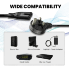 Power your double-insulated electronics safely with our professional 3-Pin UK Plug to IEC C7 Cable. This fully molded power cord combines the safety of a UK 3-pin plug with the universal compatibility of the IEC C7 “figure-8” connector, providing reliable power for a wide range of home and office equipment.
