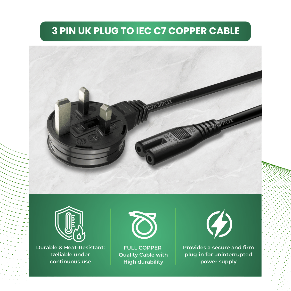 Safe, Earthed Power for Your Electronics with Our 3-Pin UK Plug to IEC C7 Cable