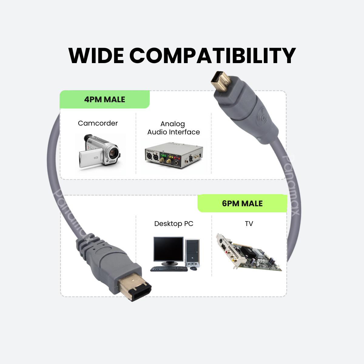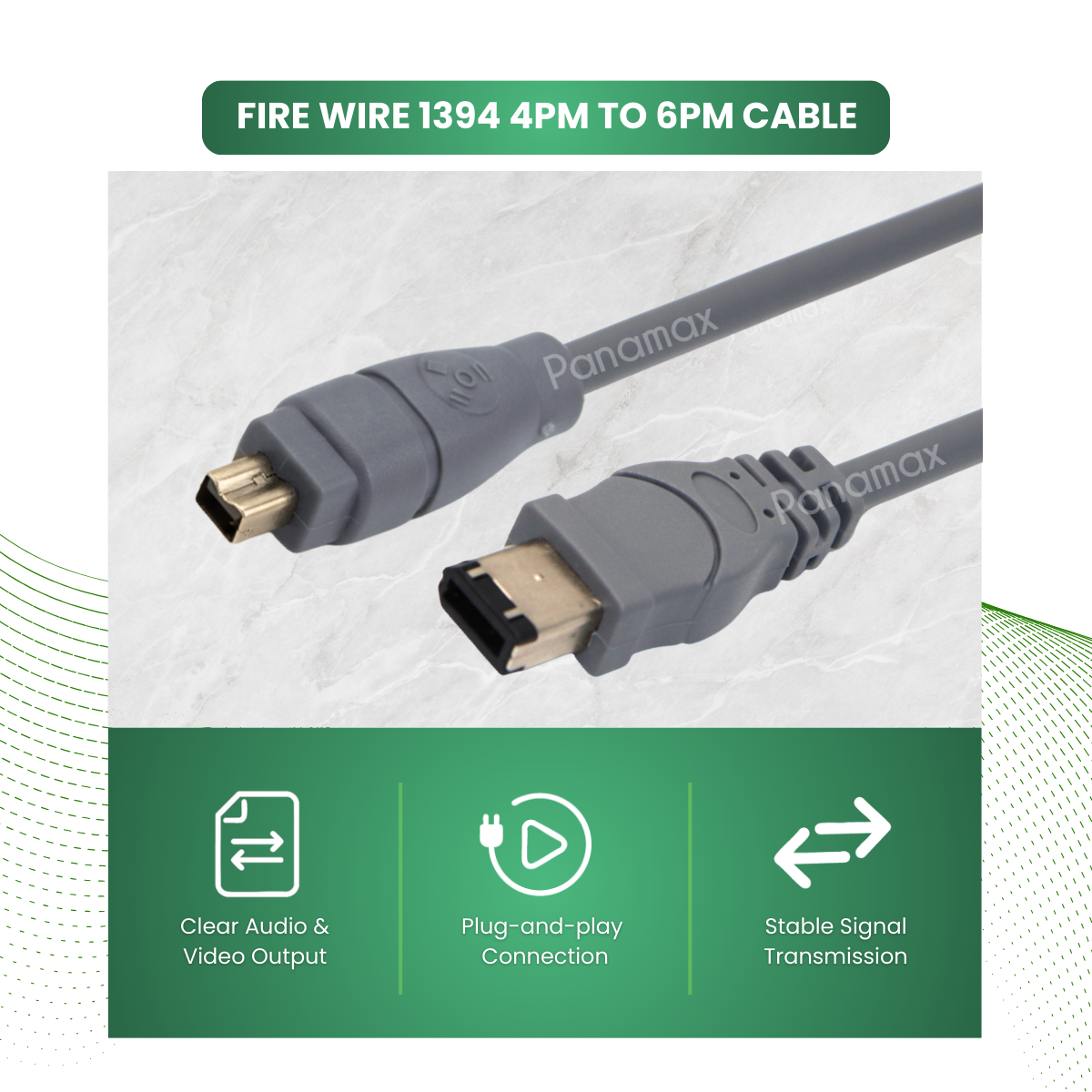 Panamax 1.8 Meter Fire Wire 1394 4PM To 6PM Cable For Older Devices Camcorder Desktop Computer = E3311