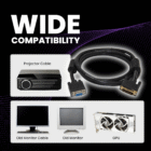 RELIABLE CONNECTION – Features Quad-shielded cable with PVC jacket for maximum video performance & prevention of signal loss