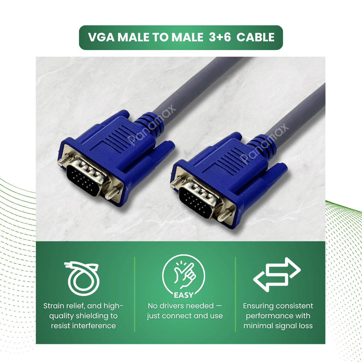 Experience a Sharper Analog Picture with Our 15 Pin VGA Male to Male (3+6) Cable