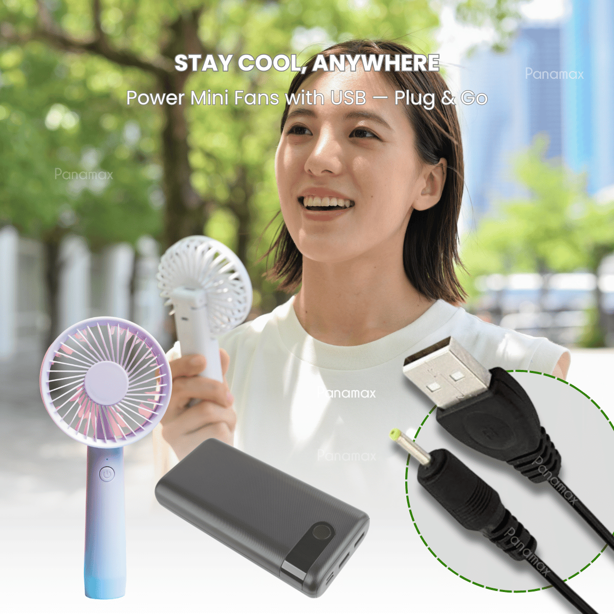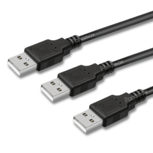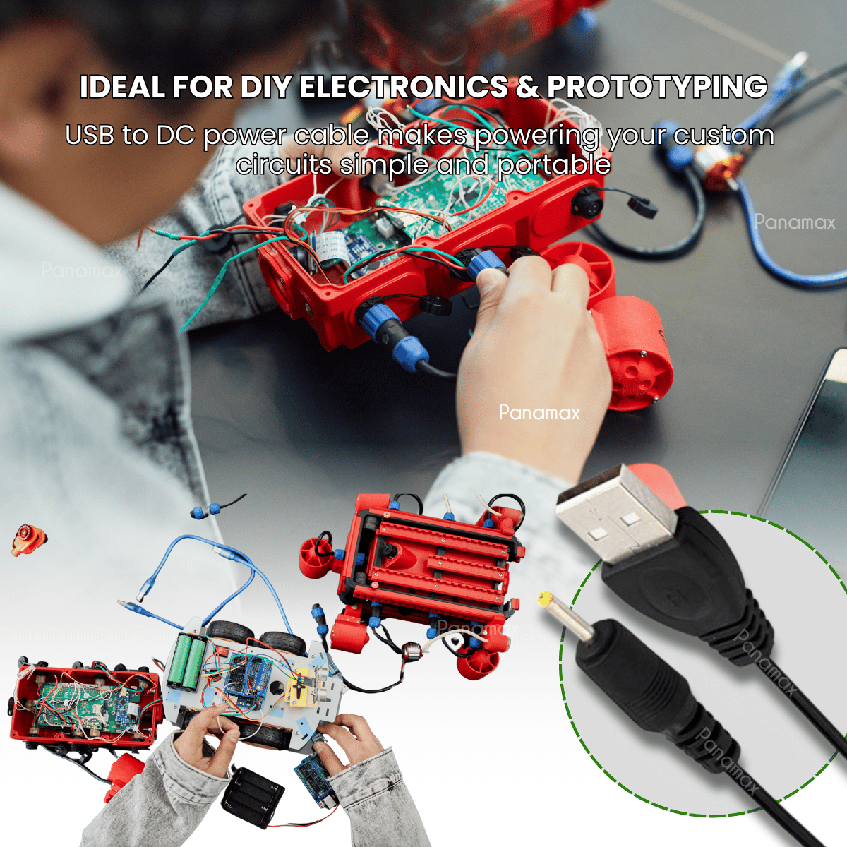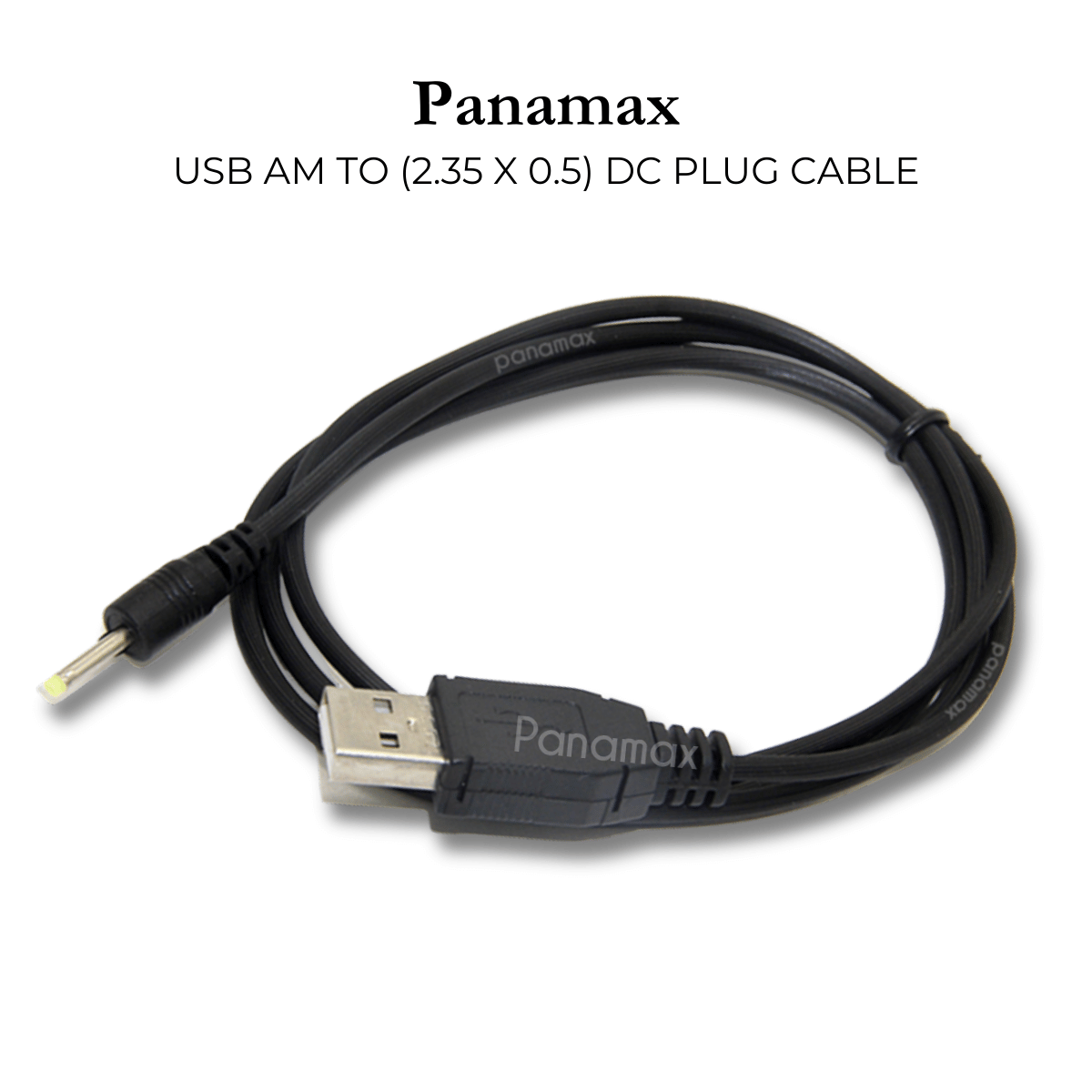 Type A Male USB plug to 5.5mm(outer), 2.1mm (inner) male coaxial/barrel plug with positive center pin.