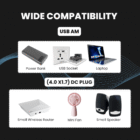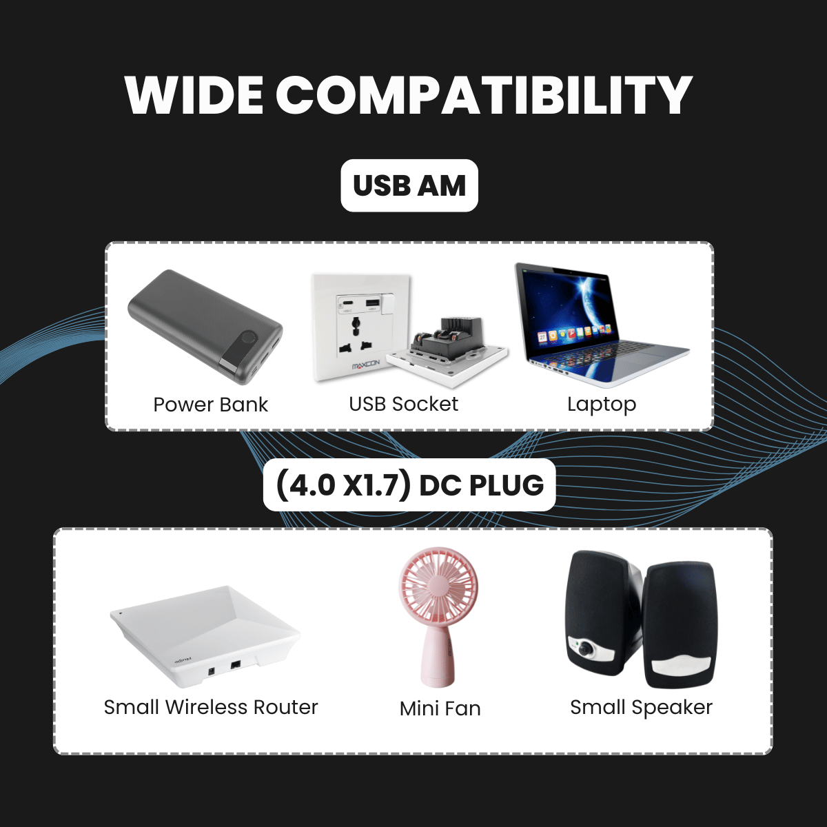 🔋 Universal USB Source: Compatible with USB-A ports from various power sources.