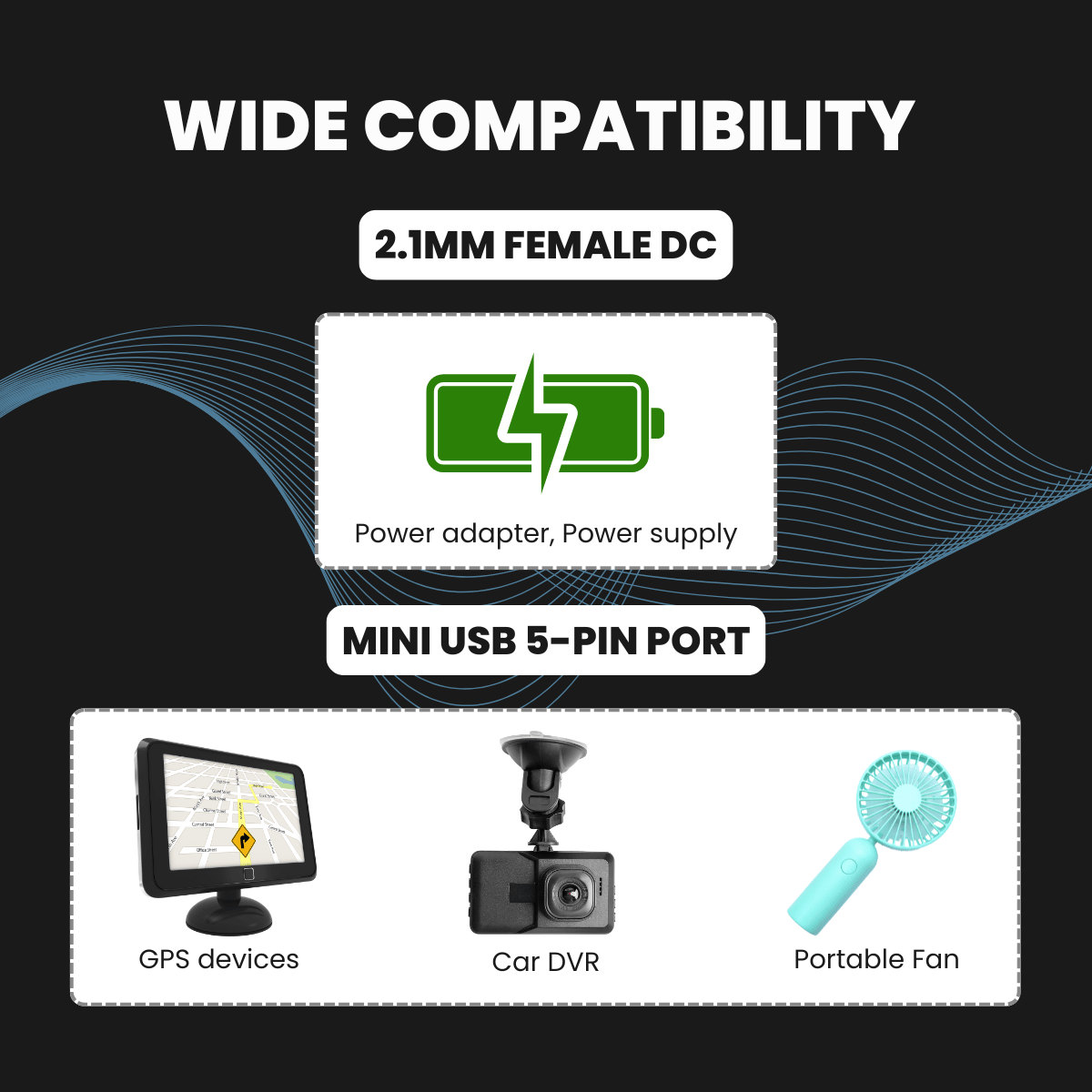 micro-USB devices via standard DC plug/adapter,Applicable to a variety of small electrical appliances, mobile phones, MP3, MP4, digital photo frames, LCD monitors.