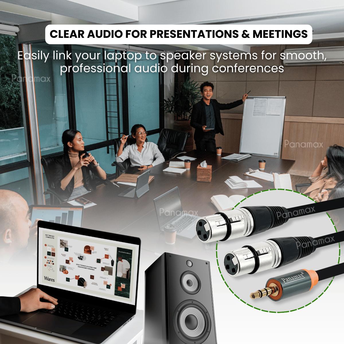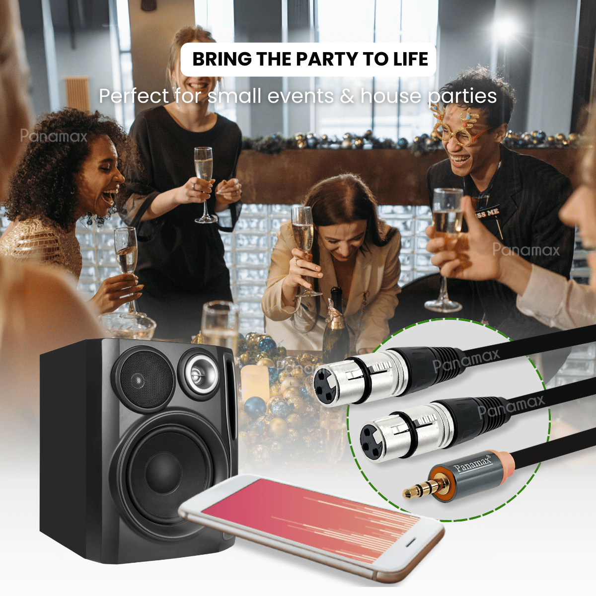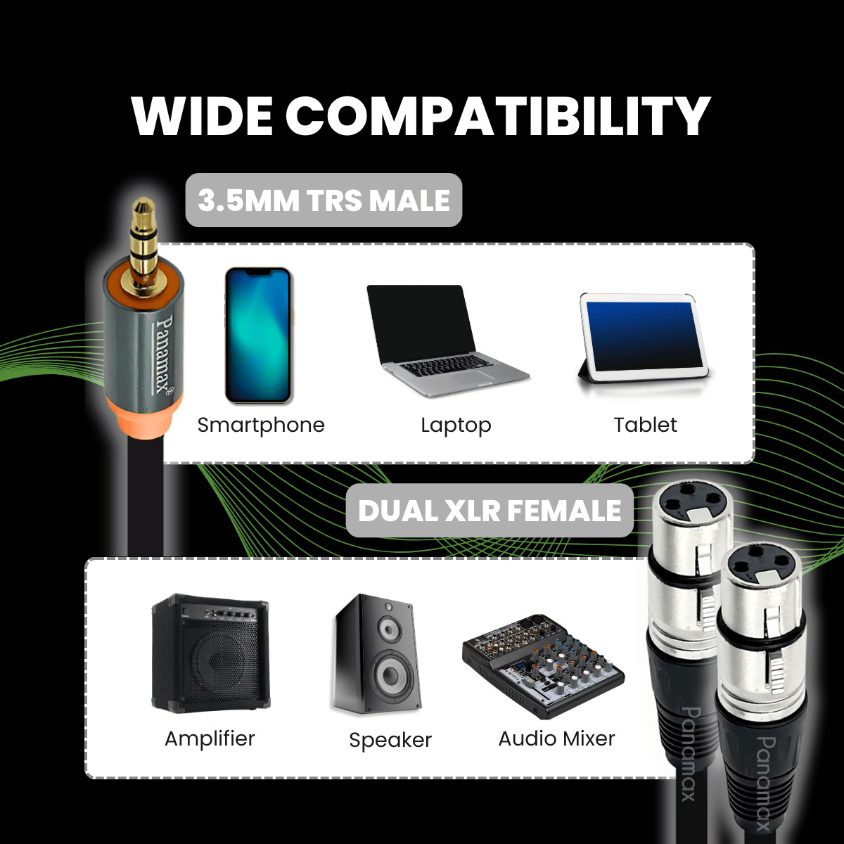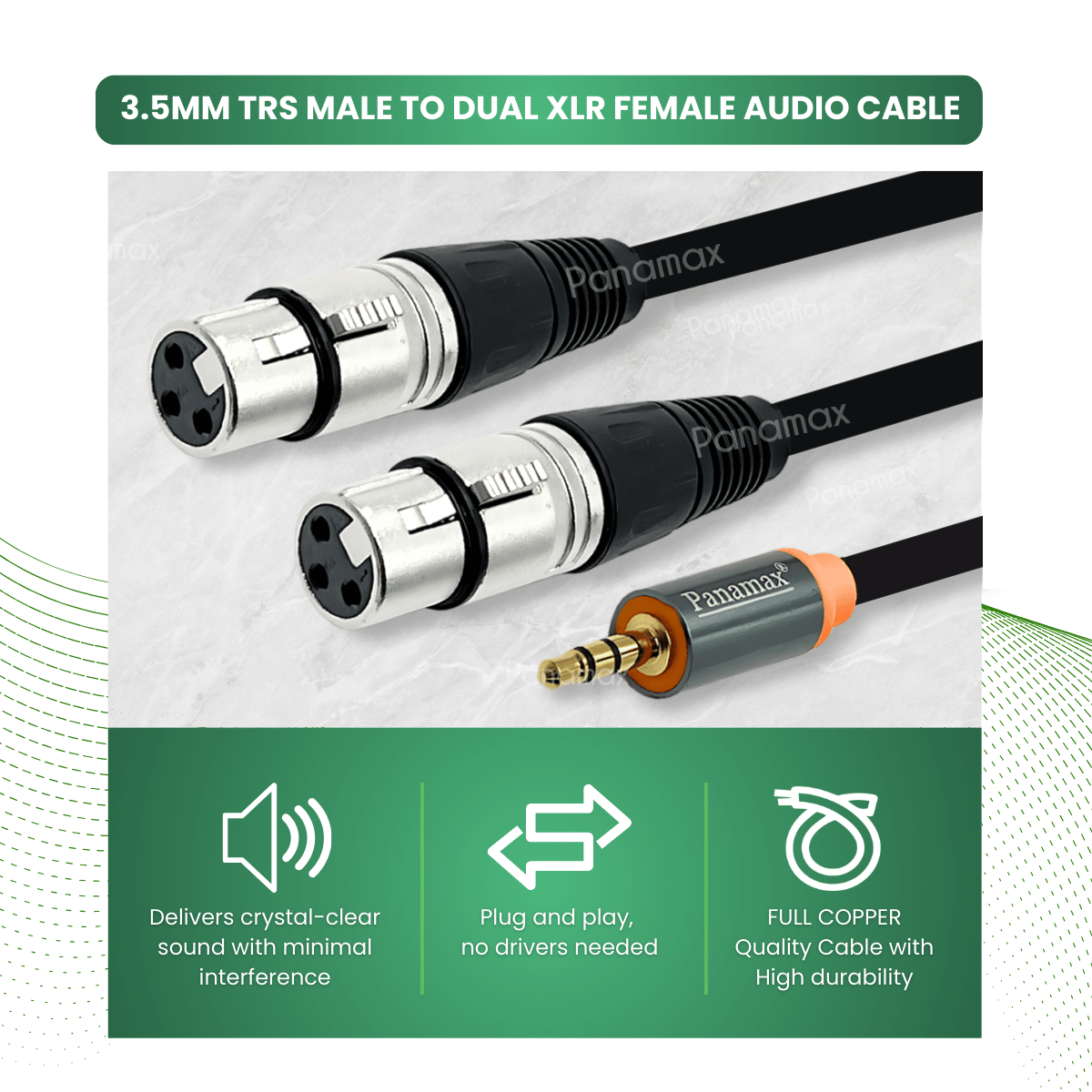 This EC-1231, professional Y-cable splits a single 3.5mm TRS stereo output into two isolated balanced XLR signals, ideal for connecting consumer audio devices to professional recording/live sound equipment.