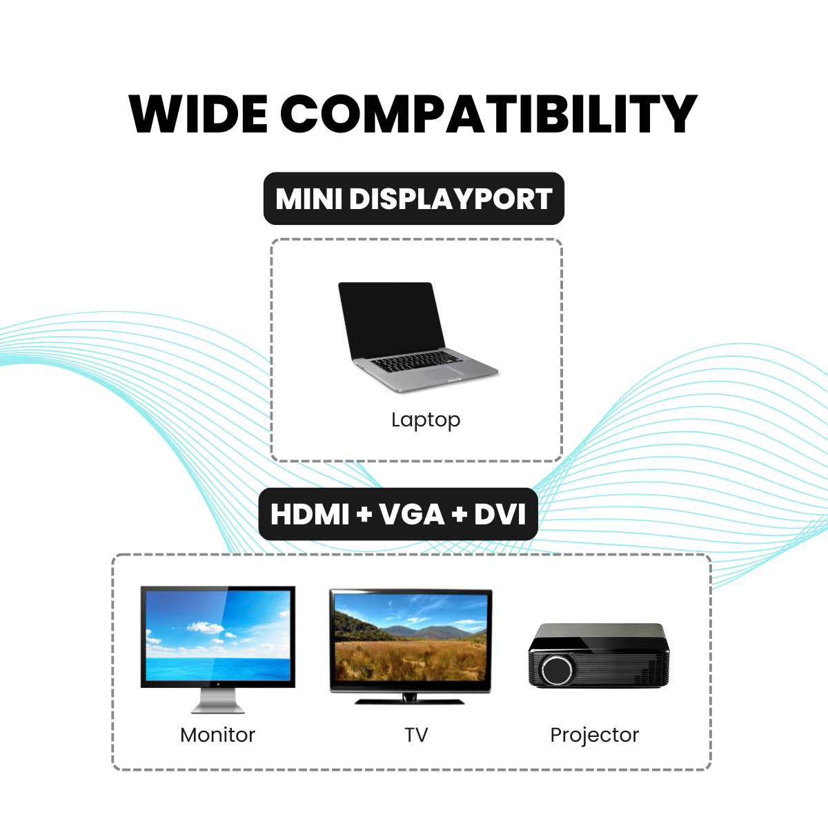 🔌 Universal Compatibility: Works with MacBook Pro/Air, Microsoft Surface, and other Mini DisplayPort laptops
