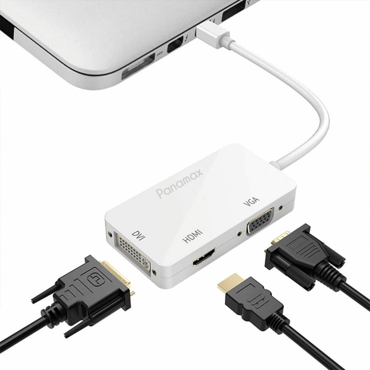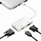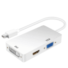 Eliminate dongle confusion with our all-in-one 3-in-1 Mini DisplayPort to HDMI + VGA + DVI Adapter! This versatile adapter provides triple display compatibility in a single compact device, ensuring you can connect your laptop to virtually any monitor, projector, or display system you encounter.
