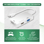 Universal Display Connectivity: 3-in-1 Mini DisplayPort to HDMI, VGA & DVI Adapter