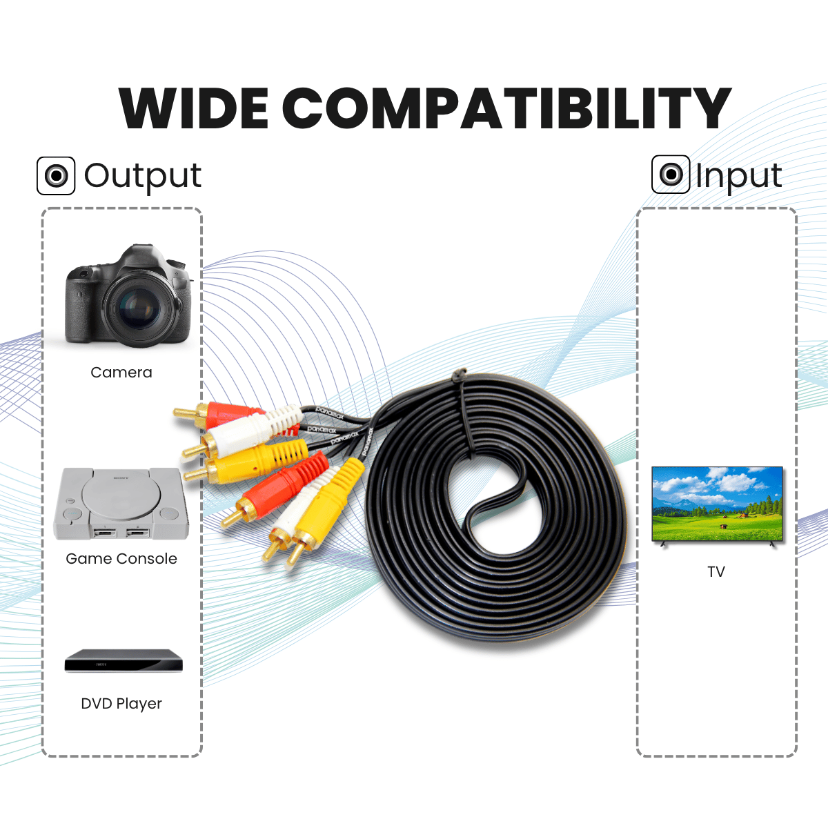 🎵 Stereo Audio: Red (Right) and White (Left) audio channels