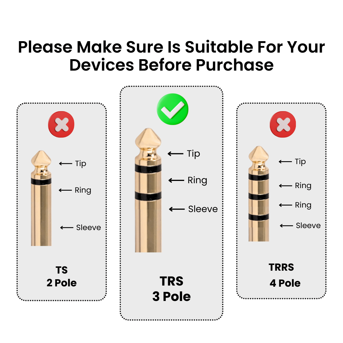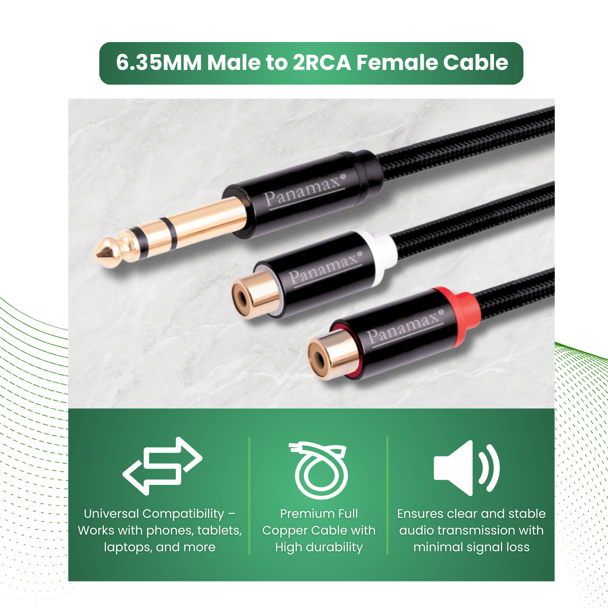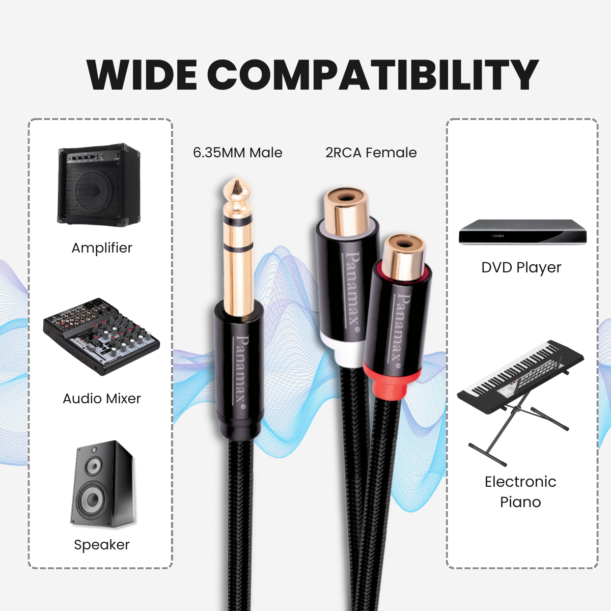 🔌 6.35MM Male to Dual RCA Female: Converts TRS/TS jacks to stereo RCA outputs.