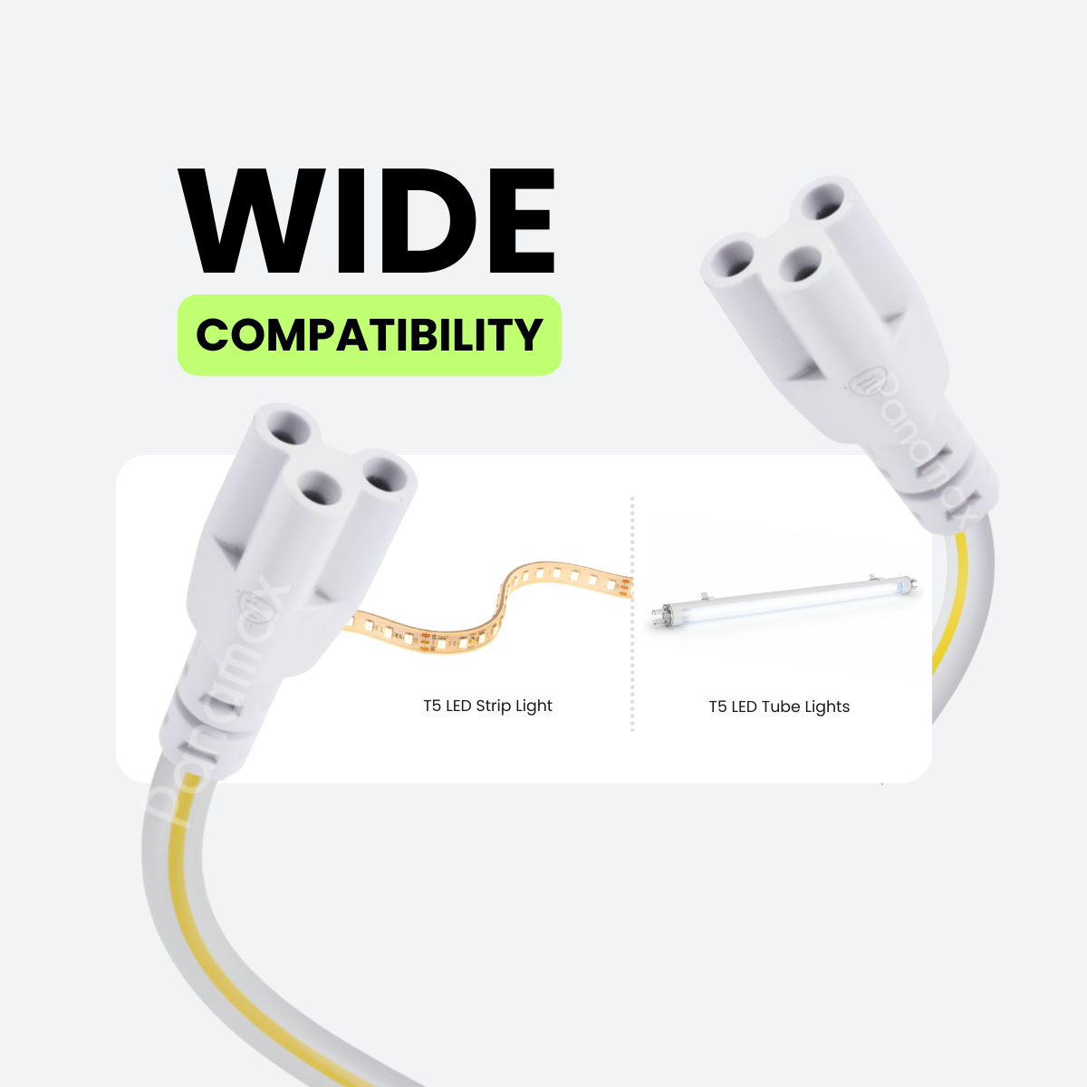 This T5 Female to Female Extension Cable provides essential spacing solutions for T5 connector LED systems, enabling flexible installation layouts by extending the distance between power supplies, controllers, and LED light strips without voltage drop issues.