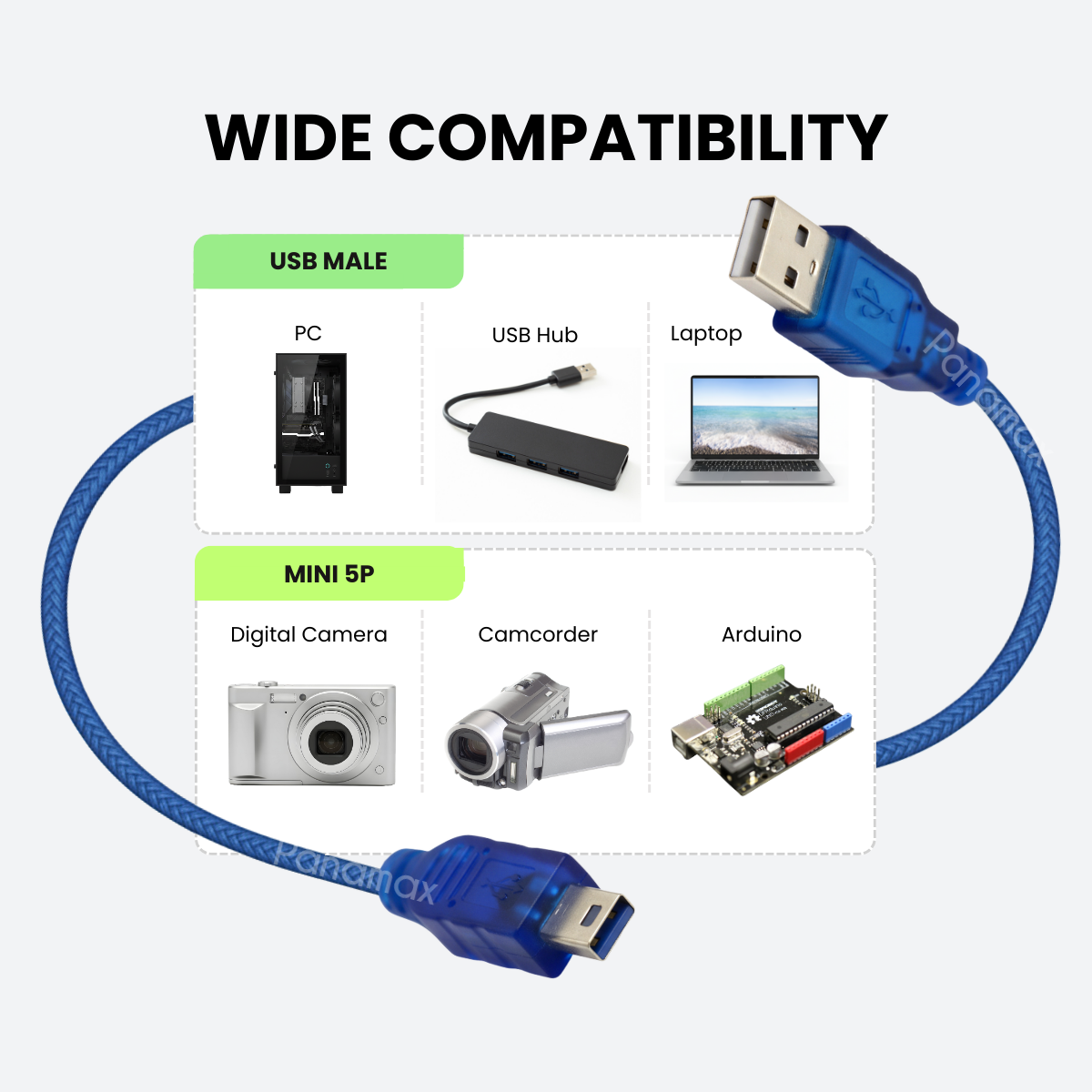 📌 Mini 5-pin : Secure connector for Mini USB ports