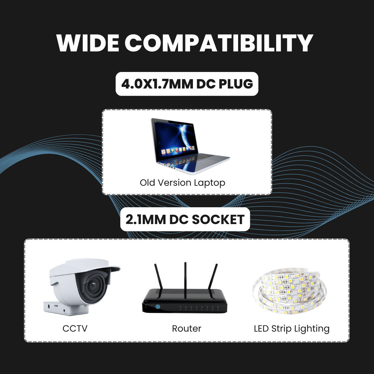 Compatible with , CONVERTER , LAPTOP ADAPTER , UPS and any Devices with 1.7MM – 2.1MM Plug Socket