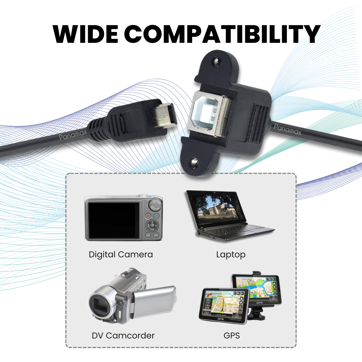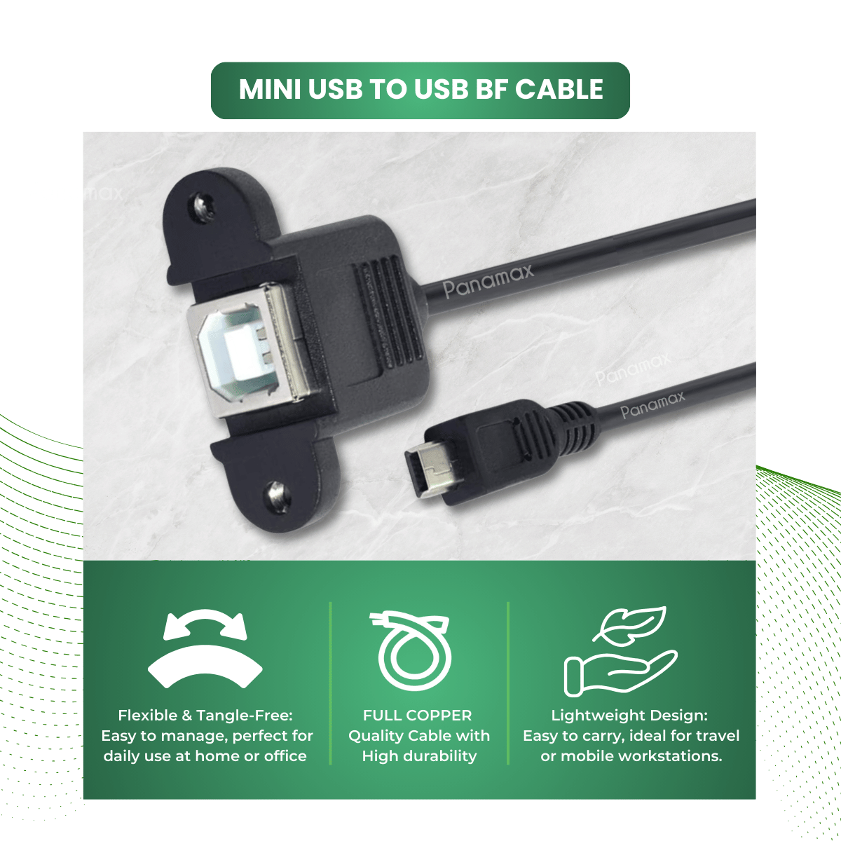 Mini USB 5pin Male to USB B Female panel mount type Cable 50cm with screws