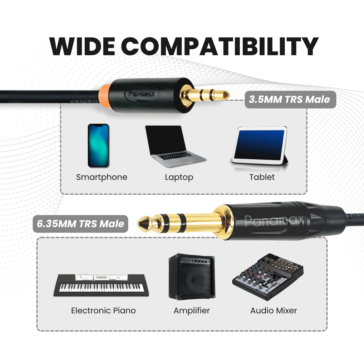PANAMAX 6.35MM STEREO MALE – 3.5MM STEREO MALE AUDIO CABLE = EC-1239