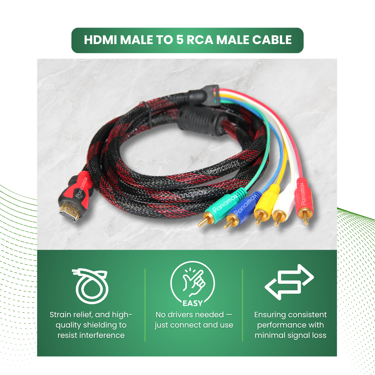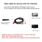 Gold plated connectors and strain relief for high speed connection, supports 480i, 480p, 720p, 1080i, 1080p resolution.