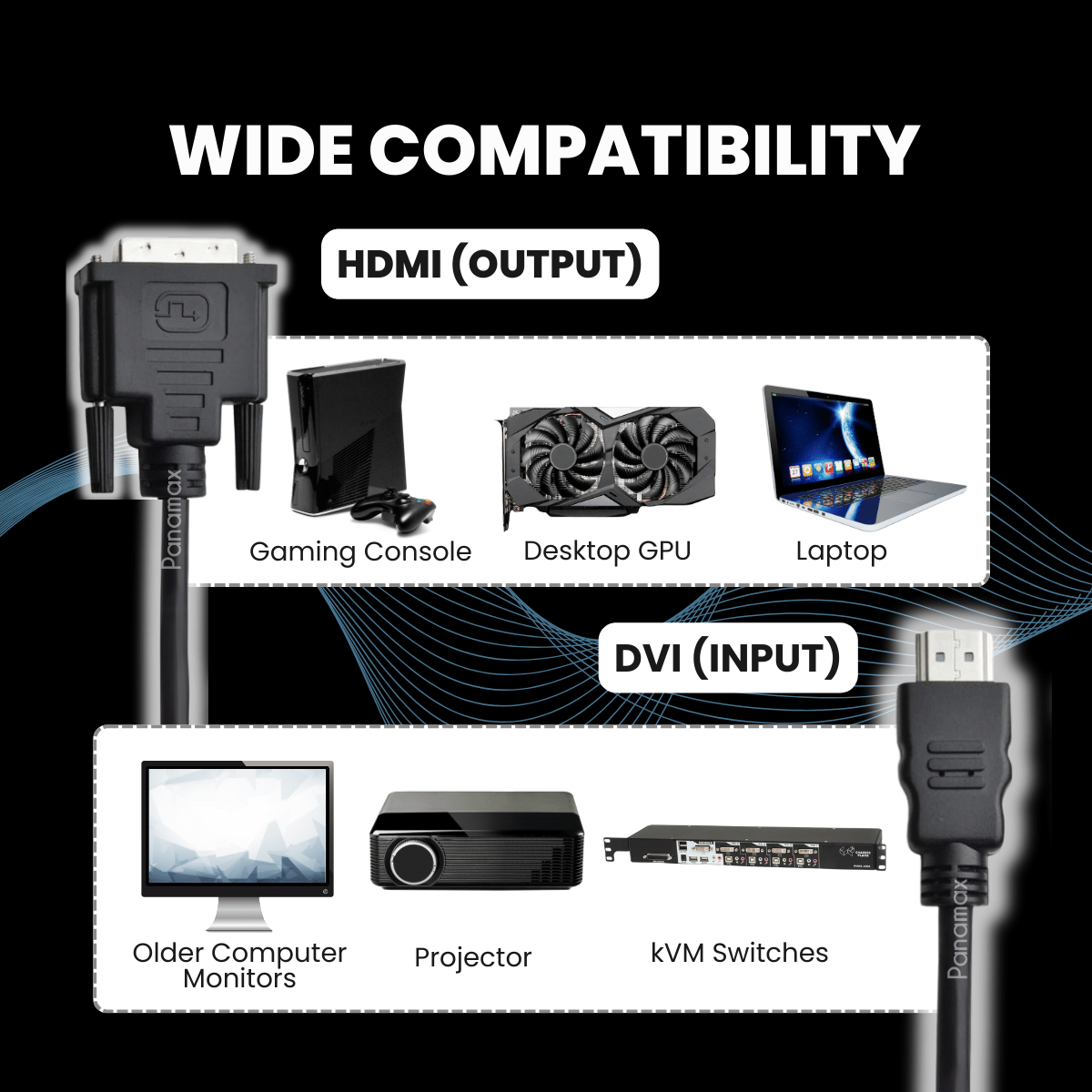 Compatible with all HDMI or DVI-D 18+1 equipped devices