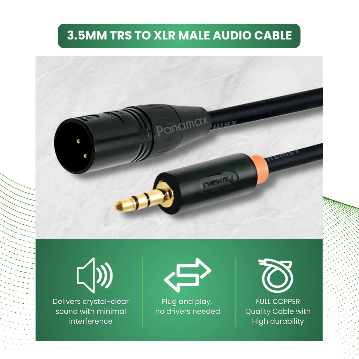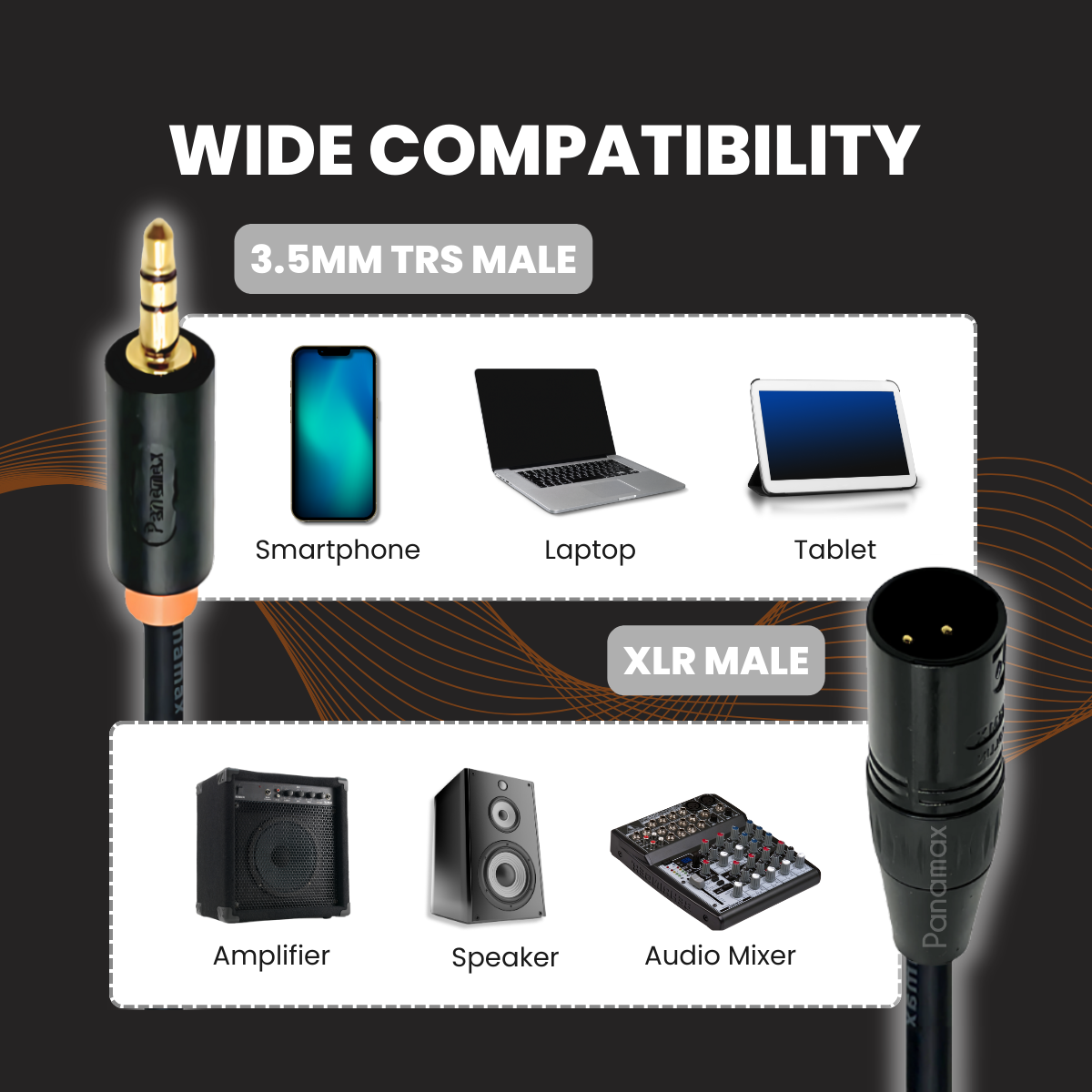 The EC-1228, 3.5mm Stereo to XLR Male Cable provides professional signal conversion between consumer devices and XLR-equipped equipment. Perfect for content creators and musicians needing studio-quality connections on the go.