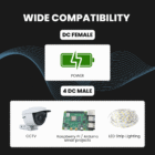 This innovative 4X DC PLUG TO DC JACK WITH WIRE provides an efficient power distribution solution, allowing a single DC power source to simultaneously energize up to four separate devices through individual DC jacks, ideal for organized multi-device setups and clean power management.